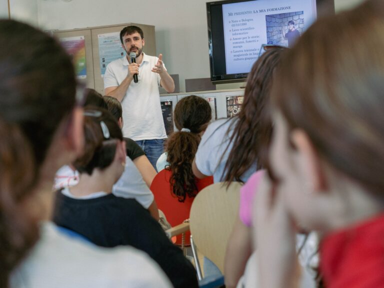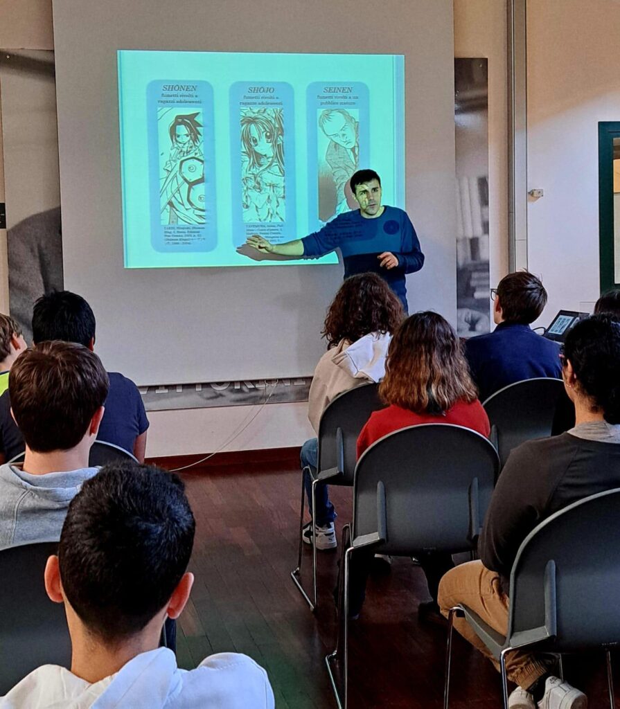 Quattro incontri con otto classi di terza media svolti presso la bellissima biblioteca di Concorezzo, subito fuori Milano. Il tema era la traduzione dei fumetti giapponesi, la pubblicazioni dei manga e gli ostacoli culturali e linguistici che affronta un traduttore nel suo lavoro. E che dire?Che gioia nel trovarmi davanti classi di ragazzi argutissimi, che adorano i manga e che hanno spessissimo interrotto (sempre con grande educazione) per fare domande e aprire tante piccole finestre su altre curiositĂ della cultura giapponese!Un’esperienza elettrizante! Sito della biblioteca: https://opac.cubinrete.it/library/Biblioteca-di-Concorezzo/Per contattarmi: https://davidesarti.it/index.php/contatti/ Â